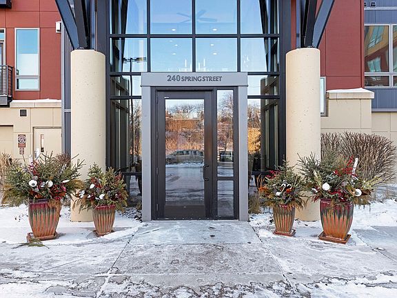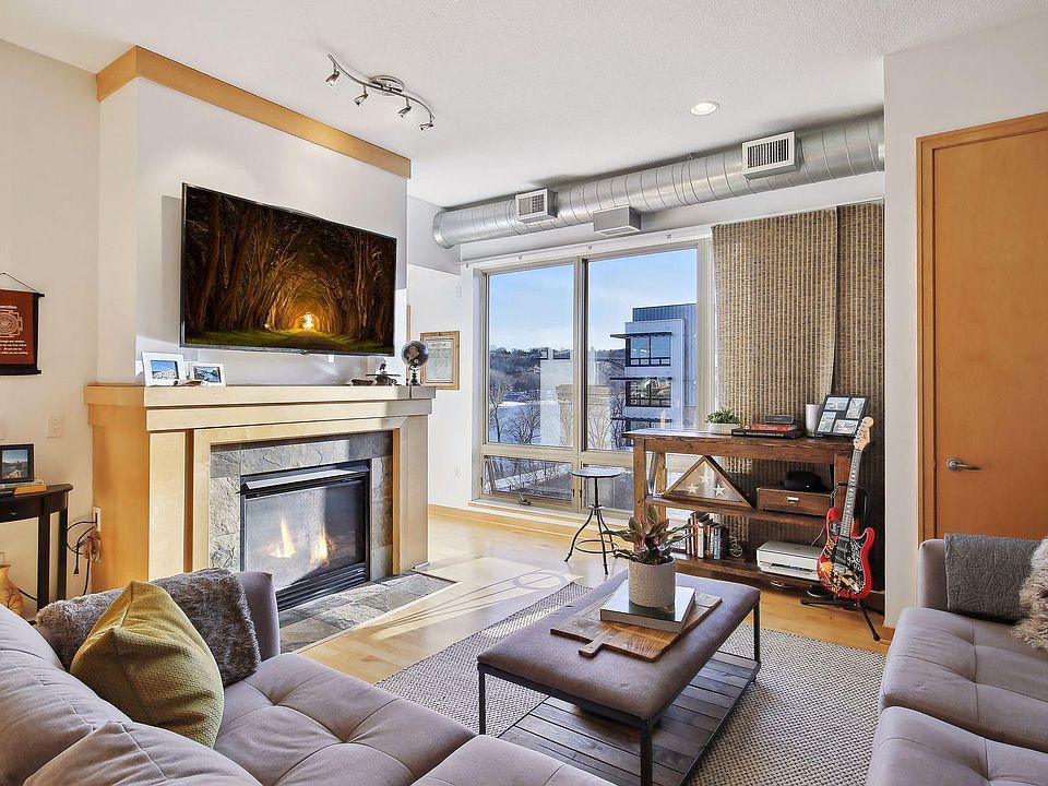Fabulous Mississippi Flats condo offering a unique lifestyle of living on the river yet located only a short walk to Downtown St Paul for award winning dining, concerts, Wild games, and shopping. The Recently redecorated open floor plan includes several upgrades. 10 -foot ceilings. Hard wood floors, center island granite and stainless kitchen. Spacious Bedroom with custom walk-in closet. A Full bath, whirlpool tub. The spacious living room is highlighted by lovely, mantled fireplace and natural light streaming through the walls of windows & balcony where you will enjoy SE views of The Mississippi River. Indoor garage parking included. Additional indoor parking spaces available for a fee.