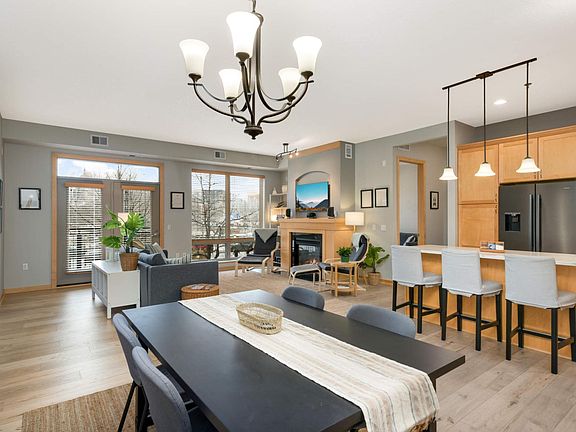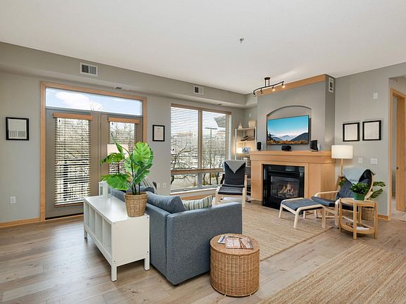Discover the perfect blend of style, comfort, and convenience in this beautifully updated condo, just steps from downtown St. Paul and the Mississippi River. Tall 10-ft ceilings and 8-ft doors allow natural light to fill the space. The living room features a stunning gas fireplace with a wood mantel and marble surround, as well as access to the private deck. The adjacent kitchen boasts quartz countertops, a stylish backsplash, new Bosch appliances (2023), a double sink, and a kitchen island with barstool seating. Elegant pendant lighting, a dining room chandelier, and matching fixtures throughout the home provide a cohesive, refined touch. The private owner’s suite includes an oversized bedroom (15’ x 12’), a walk-in closet with built-in shelving, and an ensuite bathroom with a double vanity, soaking tub, and separate shower. This single-level layout also features a second bedroom (12.5’ x 11.5’) and a second full, updated bathroom. Additional updates include high-end LVP flooring, updated blinds, a new washer and dryer (2023), a furnace (2017), and A/C (2023). Enjoy the convenience of in-unit laundry, heated underground parking, and a dedicated storage unit. Building amenities include a shared 4th-floor rooftop deck with a pergola, grill, and breathtaking river and city views, a community room, and a second-floor library stocked with books, games, and DVDs. Connected to a coffee shop and workout facility, and close to stores, entertainment, and all the vibrant offerings of downtown St. Paul, this move-in-ready home is a must-see!