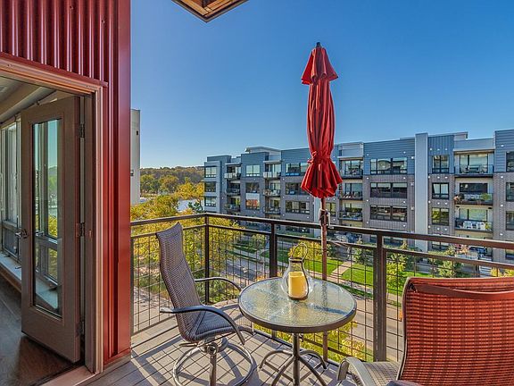 Enjoy Mississippi River views in this fully renovated 4th floor unit! This Mississippi Flats condo is move-in ready complete with updated luxury designer finishes. New flooring throughout includes maintenance free LV plank flooring, LV tiles and new bedroom carpet. Gorgeous new quartz countertops, large quartz kitchen island, stainless steel appliances, fresh neutral paint and new tile backsplash, custom closet system and jetted tub are just some of the upgrades. In unit washer/dryer, entertaining spaces inside and private deck outside are all part of the open concept floor plan. Breathtaking views, large windows, tons of natural light and tall ceilings are what makes this unit feel spacious. Amenities include owned parking spot in heated underground parking garage, shared rooftop with views, grill and entertaining space, storage and building security including camera security at front door. Close to dog park, 23 miles of trails, Xcel Energy Center and loads of St Paul shops and restaurants.