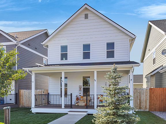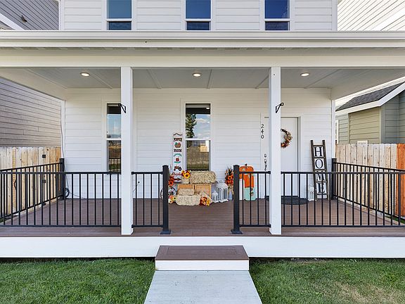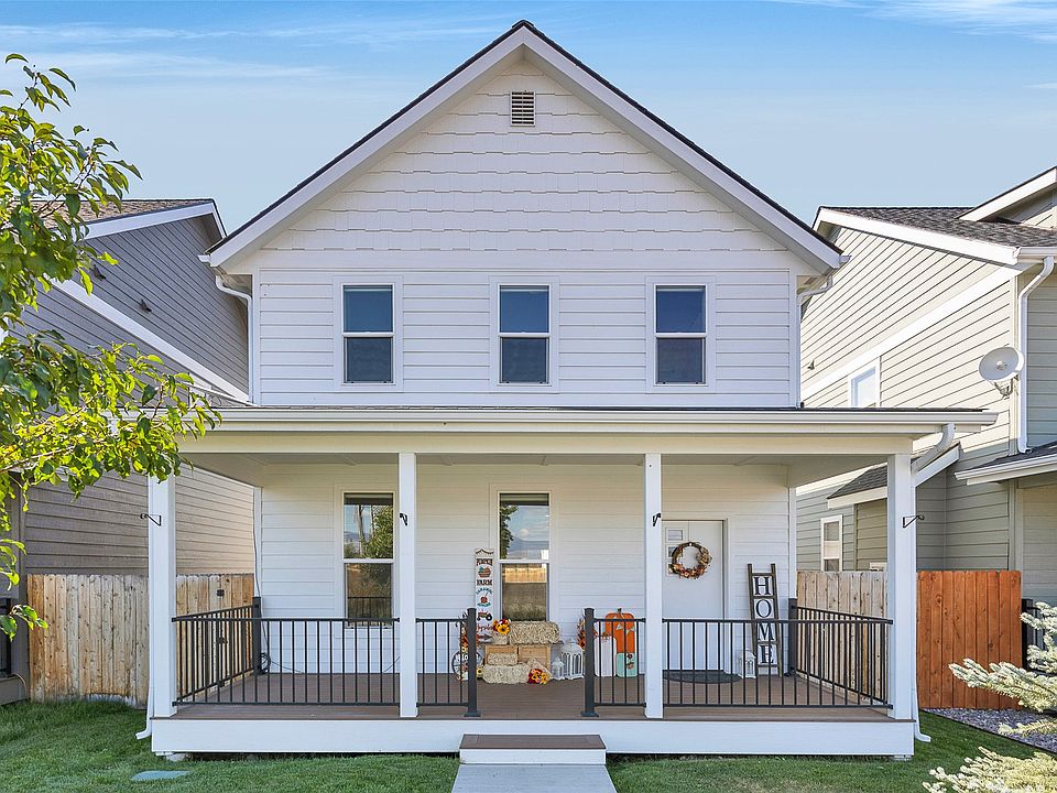Open floor planWest-facing mountain viewsPrivacy fenceCozy covered porchWalk-in closetWelcoming landscapeDining space