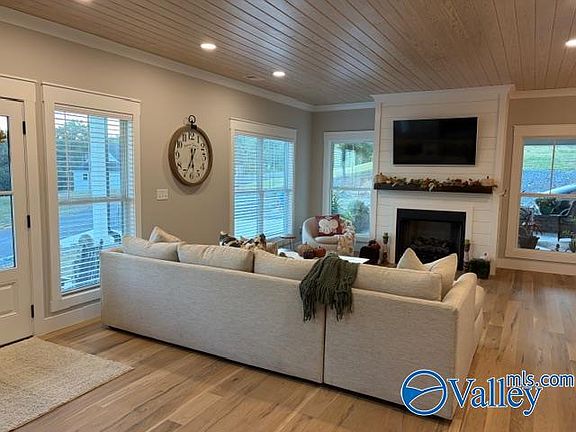 The White House up on the hill...This custom home has soo many amenities...2 lots, view of the Guntersville Lake, Outside kitchen, covered large porch area with fireplace and view of the lake. Detached bldg/workshop with 100 amp and full bath, heated and cooled. 3 bedrooms and 3 baths, master bath is oversized with a beautiful oversized porceline shower and counter tops and flooring. A large kitchen with a extra large island with quartzite counter tops, custom cabinetry with granite counter tops, warming drawer, all kitchen aid appliances, custom lighting. Tongue and groove ceilings, crown molding, 5 inch pine floors, inground tornado shelter. This house is 1 yr old and just spotless.