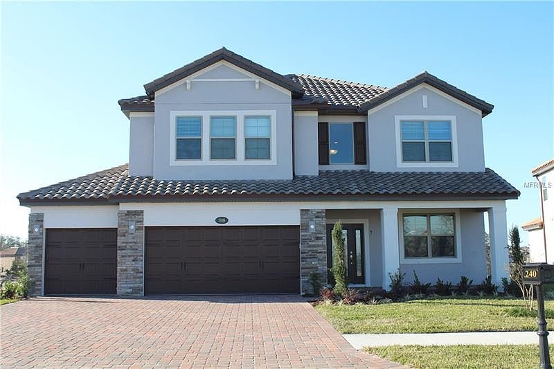 Under Construction - This spacious 2 story home offers 5 bedrooms, 4 full bathrooms, flex/dining room, large loft on the 2nd floor and open-concept kitchen & family room. Many custom features such as stone trim, concrete barrel time roof, paver driveway and walkway and large front porch with columns give this home great curb appeal. As you enter, the foyer opens to the 2nd floor as well as the dining/flex room with architectural detail windows. There's a pass through with walk-in pantry from the dining room to gourmet kitchen which boasts a built-in wall oven & microwave + hooded vent over the drop-in natural gas cook top and French door refrigerator all in a gorgeous low maintenance slate. Additional details include upgraded granite, spacious island & 42" cabinets. This home is loaded with high end upgrades including 12" X 24" tile in a 1/3 offset pattern throughout the 1st floor (excluding guest room) & all wet areas, stained treads at staircase with double landing, white pickets at staircase and balcony of 2nd floor, upgraded granite in the master bath and so much more! Storage includes a large closet under the stairs, walk-in closets in 3 of the bedrooms and huge pantry. The garage has a 4th extra deep tandem bay for storage or water toys since the community offers a private park on the river with boat ramp and the house itself has serene views of 2 ponds from the main living areas and master bedroom and views of the park from the dining room and loft. Close to the 2nd gated entrance for convenience.