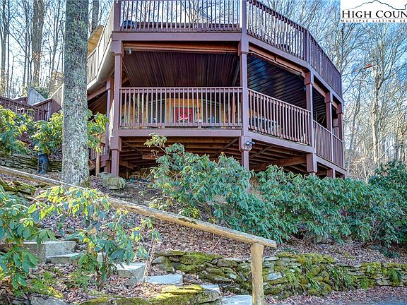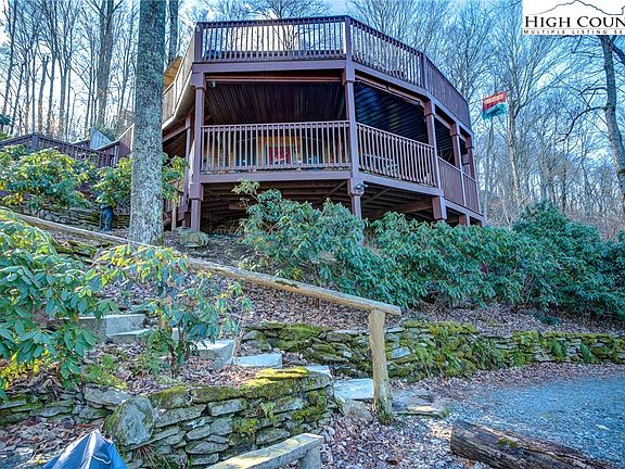 Total treehouse vibes from this adorably cozy, remodeled round house on Sugar Mountain! Excellent rental history bringing in 40K a year on AirBNB. Offered fully furnished, this income-producing property is totally turn-key. Enter onto the lower level into the stone foyer which also accesses the 2nd bedroom suite. The main floor can be accessed from the upper deck or via the spiral staircase & provides a spacious open floor plan with the kitchen, living room & very spacious primary en-suite. The home has been updated beautifully with rustic touches throughout. The large windows provide great natural light & bring the outdoors "in." Massive decking spans the width of the home & provides ample space for outdoor gatherings. Enjoy the seasonal Mountain View and a night under the stars in the hot tub. There is also an outdoor fire pit by the driveway for additional enjoyment. Being so close to ski slopes, golf, tennis & hiking has made this property an exceptional vacation rental.