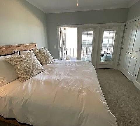 Spectacular Oceanfront End Unit with lots of upgrades. 3 bedrooms/3.5 baths, master on the main floor with access to a screened porch. Gorgeous views and lots of features: Bosch stainless appliances, water softener, hardwood flooring on main level and stairs, crown molding, 10-foot ceilings throughout, gas log fireplace, custom shelving in closet, plantation shutters, screened lower porch. Porches also have hurricane shutters. Single car garage and 2 additional parking spaces. Brick paver walkway to extra yard brick paver patio oceanside. Two guest bedrooms on second floor have direct access to porch. Additional flex room on second floor. The community has a lovely pool, clubhouse and fitness room, outdoor kitchen, fire pit, and beach front observation deck. Don't miss this opportunity to rent on Georgia's jewel coastal Jekyll Island. The cottage is fully furnished; interior and exterior furniture by Serena & Lily. Rent includes all HOA fees, utilities, taxes, insurance. Also included is access to the Clubhouse and amenities; pool, community fire pit and fitness, and beach access.