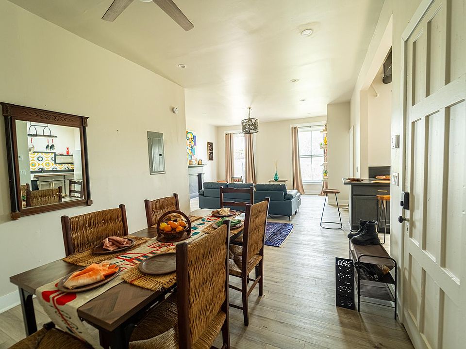 Step into this uniquely styled 2-bedroom/2-bathroom walk-up, a true hidden gem perfect for your next getaway! You'll love the vibrant energy of the colorful curtains and the captivating artwork that creates an inviting and inspiring atmosphere. Relax in comfort on the plush bedding after a day of exploring. These spacious rooms features stylish dark flooring and ample natural light, making it a bright and welcoming retreat. With a dedicated space for hanging clothes and easy access to other areas of the home, it's designed for both comfort and convenience. Steps away from Washington Park, Historic Lark Street, and the New York State Capitol.