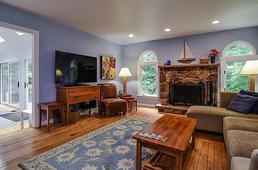 Gracious Colonial with extreme privacy on 17.36 acres in an enclave of 3 mini estates. This is a lovely, bright & spacious home which offers a terrific floor plan with a great flow perfect for entertaining & comfortable family living for a variety of lifestyles. There are gleaming hardwoods throughout the first floor, huge mudroom with ample maple cabinetry for lots of storage, large eat in kitchen, glamorous library with beautiful built ins, formal living and dining rooms, fireplaced family room & very spacious sunroom with sliders to a deck overlooking the peaceful woodlands. The second floor offers 2 master suites, 3 more family bedrooms & a wonderful space for exercise room or study. The walk out lower level with fireplaced family room, bedroom and full bath is perfect as a guest suite, au pair or in law arrangement. A perfect location for nature lovers, equestrians looking for room to build barn, riding ring & easy access to trails. A truly perfect spot w/ lots of possibilities!!!