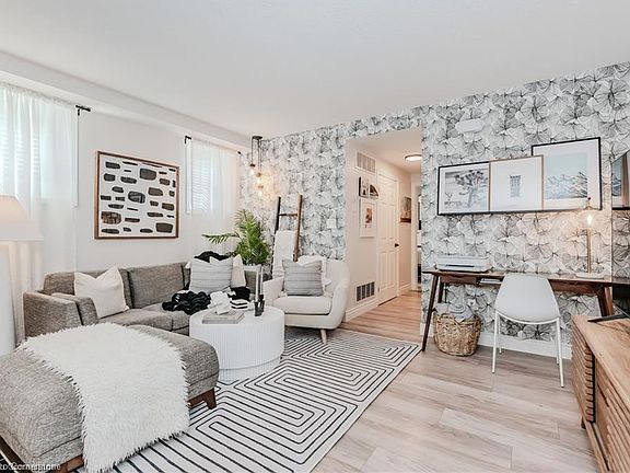 Beautiful 1-bedroom, 1-bath stacked townhouse in the popular Beechwood Forest. Features a modern, spacious open-concept layout, a good-sized in-suite laundry room, ample storage, and a private fenced patio. Convenient access to Hwy 8 and just minutes from shopping and amenities at 'The Boardwalk.' Move-in ready with low condo fees—perfect for first-time buyers or investors.