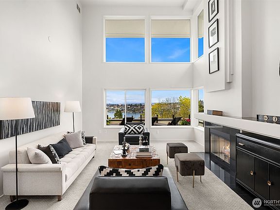 A masterpiece of modern living close to Amazon, Google, SLU & fabulous places to dine! This renovated townhome is part of a $5MM building-wide transformation. Floor-to-ceiling windows frame breathtaking Lake, Cascade Mtns & Territorial Views. Bring the outside in to this private retreat. Ever-changing scenery & relaxation on your choice of 3 decks. Soaring 25+ ft ceilings enhance the open layout, complimented by well-designed updates. Chef's kitchen w/new stainless steel appls, formal LR, DR, Fam Rm, Ofc/Flex area. Luxurious primary ensuite with all the comforts needed to de-stress! 2 wood-burning FPs, central a/c, 3-car gar + 1 add’l pkg sp, lots of storage. Seller has done the work, including taking care of the $350k assessment!