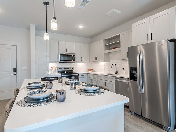 - Exterior features: 9 ft Ceilings, Access to Greenway adjacent to Aenon Creek, Balcony, Barbecue, Bicycle storage, Built-in Bookcase*, Built-in Desk*, Coat Closet*, Dual-sink Bathroom Vanity*, French Door Refrigerators, Fully-equipped Pet Spa, Kitchen Island with seating for 4, Lawn, Linen Closet(s), Matte Black Lighting and Hardware, On-Site Maintenance, Oversized Closet(s), Package Receiving, Pet Park, Planned Community Social Events, Quartz Countertops, Stacked Shoe Shelving*, Stacked Tile Back-splash in Kitchen, USB Outlets in Kitchens and Bedroom(s), Walk in Shower*, Whirlpool Stainless Steel Appliances, Wine Rack and Pull-out Trash Drawer, Yale Smart Lock Keyless Apartment Entry, Zoned for Williamson County Schools