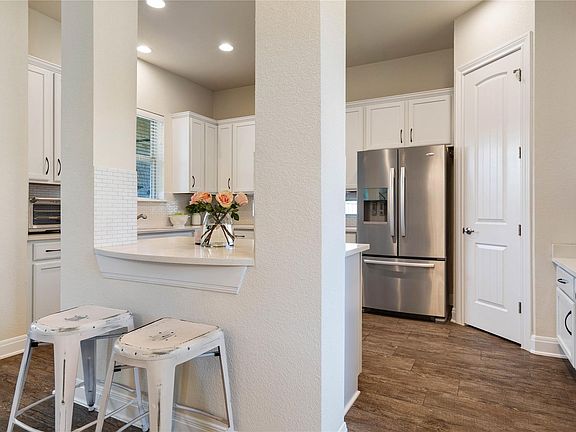 Discover 2400 Chambray Ct. located in Gabardine Gardens of Shady Hollow, a highly sought-after, gated community in Southwest Austin, offering a unique and desirable "cottage-like" standalone condo. Enjoy beautiful curb appeal and a serene setting tucked in a quiet cove, with the backyard overlooking green space and just steps from the community pool. The first floor boasts an open-concept design, seamlessly connecting the sizable dining room, spacious kitchen, and living area, all illuminated by an abundance of natural light. This charming 2 story home provides 2,007 square feet of comfortable living space featuring an oversized primary suite with a large sitting room, 2 bedrooms, 2.5 baths and 2 car garage. The kitchen is a chef's delight with granite countertops, soft-close, shaker-style cabinets with sleek hardware, stainless steel appliances, a double oven, center island, and plentiful cabinet and counter space. The kitchen also features the perfect spot to use as a work space with a built in desk and extra cabinet space. A half bath with a stylish tiled wall and sizable laundry room round out the first floor. Upstairs you will find the oversized primary suite with an attached, spacious sitting area ideal for a home office or 2nd living space, an ensuite bath with dual sinks, walk-in shower and a walk-in closet. Also located upstairs are two additional bedrooms, both with walk in closets and a 2nd full bathroom. Come experience true "lock and leave" living with HOA covering landscaping, exterior maintenance and upkeep, common area maintenance, and access to a beautiful pool in a serene setting. This quaint community is zoned for top rated schools, including Baranoff Elementary, Bailey Middle School, and Bowie High School.