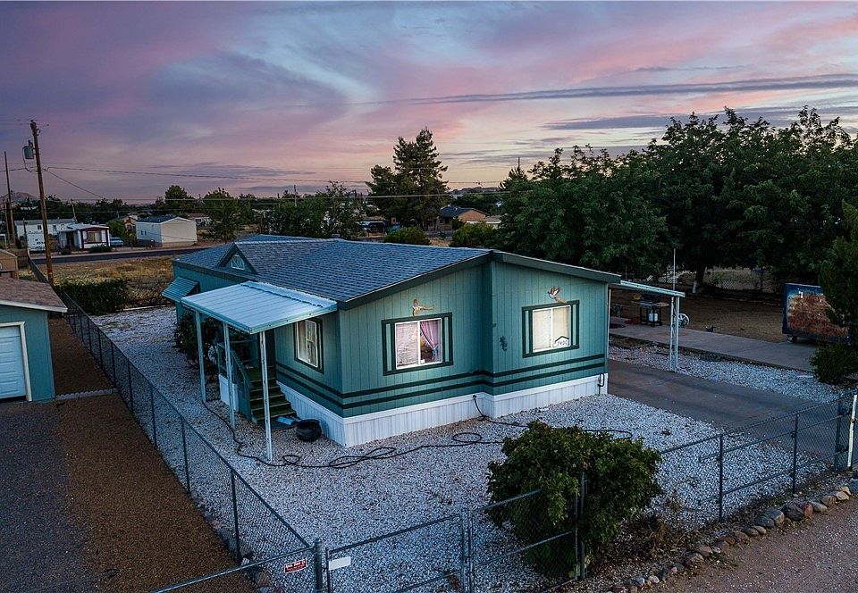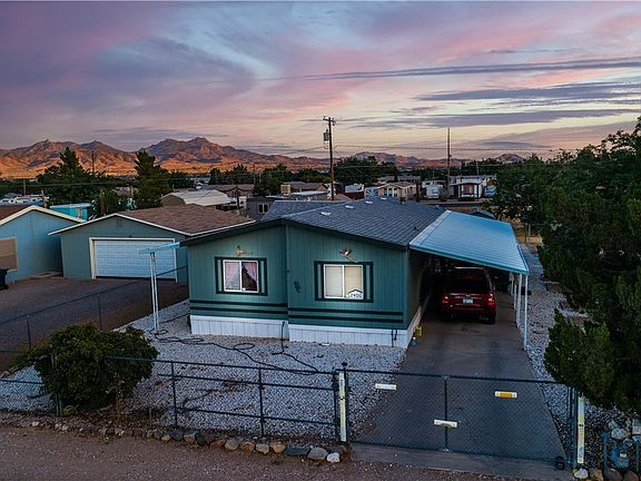 1221 SQ FT 3 BEDROOM 2 BATHROOM DOUBLEWIDE MANUFACTURED HOME WITH 2 DETACHED STORAGE SHEDS AND A DOUBLE DEEP COVERED CARPORT ON A 0.14 ACRE LOT** CYCLONE CHAIN-LINK FENCE WITH RV GATES ** THE EXTERIOR OF THE HOME WAS PAINTED 4 YEARS AGO* A NEW WATER HEATER A YEAR AGO** THE ROOF IS 5 YEARS NEW* DECORATIVE ROCK & PAVERS* Wheelchair ramp to the door* Metal security screen* Home has a spacious living room with vaulted ceiling, view windows for natural lighting, skylight and cozy carpet*dining area off the kitchen* The kitchen has nice cabinets and countertops, breakfast bar, refrigerator, double oven, gas cook top & dishwasher*. Split bedroom floor-plan* Queen-size owners suite with walk-in closet, walk-shower and vanity**2 guests bedrooms* full size guests bathroom with a tub/shower combo** In-door laundry washer and dryer are included and built-in cabinets* *You'll appreciate the amazing sunset from the huge carport and patio**The beautiful birds chirping from the mature trees in your front porch* Whether you're looking for fun entertainment for family and friends, BBQs, or simply a place where you can jump on the ATV's and take ride through the desert trails this will be a great property for you. You have easy access to many of Kingman's desert trails*Low Taxes and No HOA * 45 minutes to Laughlin Nevada Casinos, Lake Mohave & Colorado River* COLD AC*