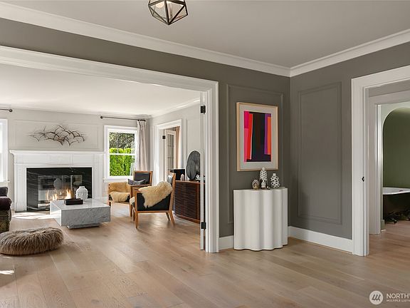 Where classic architecture meets inspired design: this 1924 Montlake Grande Dame has been transformed with vision and precision. Designer light fixtures and wallpaper, custom window coverings and exceptional finishes shape interiors that are dramatic yet enduring. A Euroshield roof, copper gutters, and wide plank oak floors ensure longevity and beauty. Gracious main-level rooms welcome gatherings of all sizes, complemented by an upstairs peaceful primary suite with spa-quality bath. The lower level offers a polished two-bedroom living space with its own kitchen—perfect for extended stays or multi-gen lifestyles. Blocks to the Arboretum, UW, and neighborhood cafés, this home embodies history reinvented. Luxe. Curated. Distinctive.