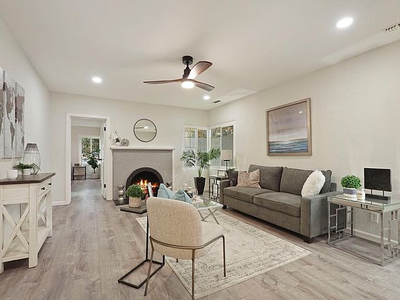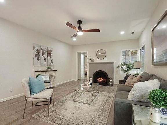 Beautifully updated home on a large corner lot. Freshly painted inside and out with new LVP flooring, this residence combines classic charm with modern updates. The kitchen features granite countertops, and brand NEW stainless steel appliances. Cozy up to the whimsical wood burning fireplace in the living room, or entertain in the dining area with built-in hutch. Spacious bedrooms include a master suite with private bath and walk-in closet. Indoor laundry adds convenience to daily living. Step outside to the backyard patio complete with mature fruit trees, ideal for relaxing or entertaining under the California sun. A truly move-in ready home with charm, style and thoughtful upgrades. Don't miss the opportunity to make this gem yours!