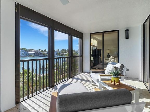 Great location for beach access and 5-star resort amenities! Admiralty Point on Gulf Shore Boulevard North offers a rare opportunity to enjoy one of Naples' most desirable waterfront communities. Perfectly situated between the Gulf and Moorings Bay, this gated 10-acre property combines convenience, security, and resort-style amenities. This spacious three-bedroom, two-bath residence features a generous floor plan with abundant natural light and modern, clean, and comfortable decor. The enclosed lanai and family room provide direct bay views, where you can take in beautiful sunrises and watch dolphins and manatees in their natural habitat. Deeded parking adds ease and security, making this home well-suited for the perfect getaway in Naples. Admiralty Point's amenities include an Olympic-size pool, spa, and children's pool on the Bay side, with outdoor grills and a renovated clubhouse. A fitness center, tennis courts, bocce, and shuffleboard provide recreation opportunities, while the Gulf side of the property features a newly renovated resort-style pool, additional grills, and a second clubhouse just steps from the sand. The community's 24-hour security and gated entrance provide peace of mind, and the location offers close access to beaches, dining, shopping, and the cultural attractions of Naples. Admiralty Point combines waterfront beauty with the convenience of a resort-style community.