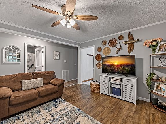 Ranch Style Home situated on a 1.0 Acre lot and features 3 Bedrooms, 2.5 Baths with a Enclosed Front Porch and New Side Deck. Eat in Kitchen with wood cabinetry. Master Bedroom has a attached 1/2 bath. Two additional bedrooms are located on main level and share a full bathroom w/shower/tub combo. Downstairs in Basement level there is a Full Bathroom. Full Attic Storage, Metal 2 car carport, Outdoor Storage Building/Workshop and Gutters and Private Well....Home has recently been updated with New Sheetrock, Light Fixtures and Doors and Trim in Main Living Area and New Blinds throughout, New Flooring and Vanity in Full Bath on Main Level, New Side Deck, New Thermostat on HVAC, Screws have been replaced in the Metal Roof and the Roof has been replaced within the last 10 to 12 years by previous owners and Septic Tank has been pumped and field lines replaced.Paved Road Frontage and Circular Driveway. Home Warranty provided at Closing.