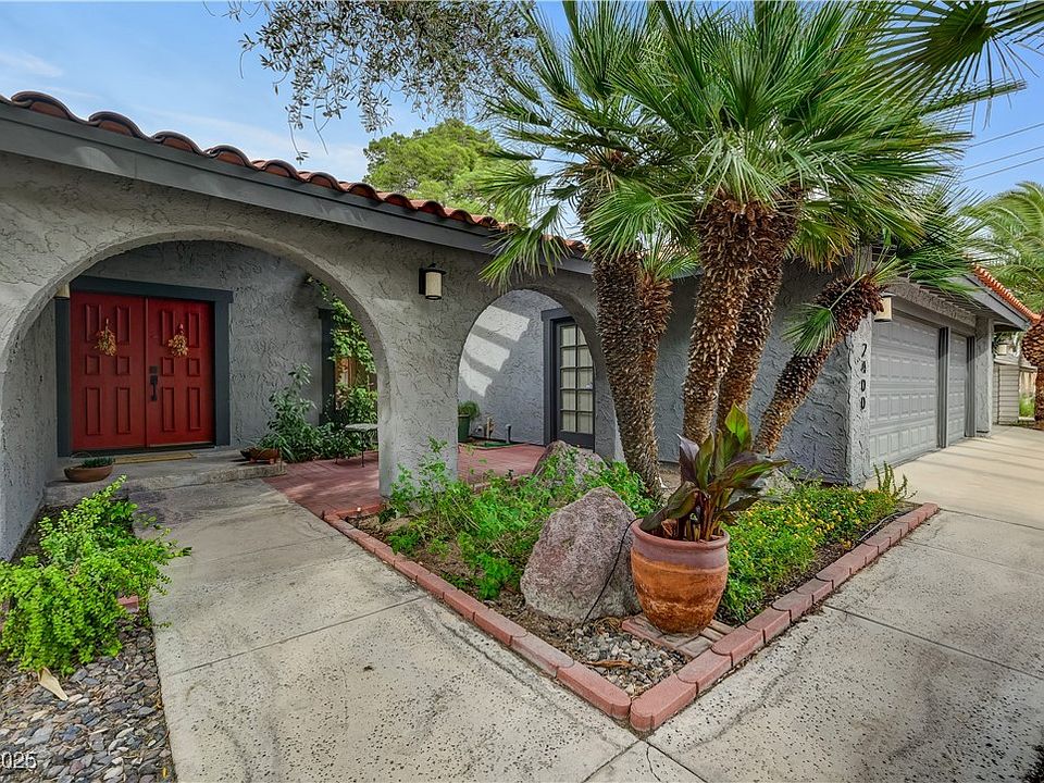 Discover vintage charm in this beautifully maintained single-story home in historic Rancho Bonito Estates. Featuring 3 bedrooms, 2 full baths, and a 3-car garage, this property blends classic comforts with modern updates. The family dining area offers vaulted ceilings filled with natural light and a cozy wood-burning fireplace. The spacious primary suite includes a newly renovated bath and custom walk-in closet. Nearly ¼ acre, the private yard features mature trees, lush landscaping, and a covered patio—perfect for entertaining or relaxing outdoors. Additional highlights include RV parking, a new water softener and tankless water heater. With no HOA and a prime location near downtown, the Arts District, Medical District, and the Strip, this timeless property offers a rare opportunity to own a piece of Las Vegas history. Please note tax records show 2628 square feet before den was converted back to original 3-car garage; current configuration is 2028 livable square feet.