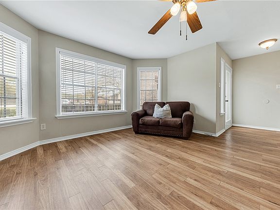 Brick fireplaceLaminate flooringFenced spacious back patioSleek granite countertopsCharming front porchOversized bedroomsAbundant cabinetry