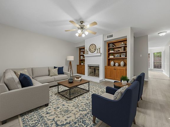 Welcome to this beautifully refreshed 3-bedroom, 2.5-bath condo in the heart of College Station! With brand new paint, plush carpet, and new luxury vinyl plank flooring in the living room, this home feels clean, stylish, and move-in ready. Downstairs features a spacious living area with a charming central fireplace and wall-to-wall built-in cabinets—perfect for extra storage or display. The open-concept dining area is oversized and flows seamlessly into the kitchen, which boasts stainless steel appliances. You’ll also find a convenient half bath, a large utility room, and an oversized storage closet on the main floor. Upstairs, the large primary suite includes two closets, a spacious en-suite bath, and access to a private deck overlooking the complex’s beautiful pool area. Two additional upstairs bedrooms are generously sized and share a full hall bathroom. Enjoy your own private courtyard and a two-car garage—plus access to the gorgeous community pool surrounded by mature trees. This quiet, tree-lined community is just minutes from restaurants, shopping, schools, and everything College Station has to offer.