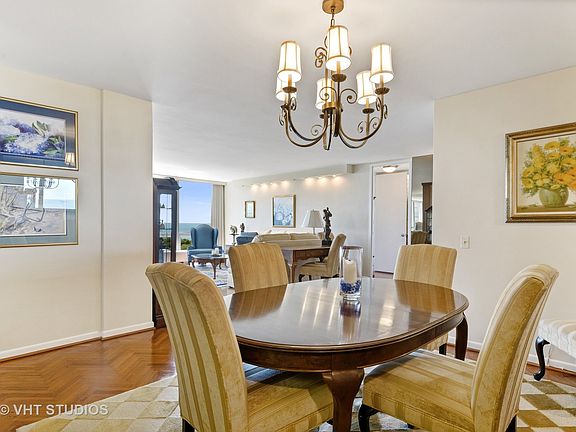 Cross the threshold into this dramatic and spacious 3 bedroom condo and be mesmerized by views of Lake Michigan and Lincoln Park from every room. The third bedroom has been opened to the living room to create a sweeping panoramic view from expansive floor-to-ceiling windows. The kitchen features stainless appliances, ample cabinet and counter space and opens into a large dining room. Stunning herringbone hardwood teak floors add a sense of sophistication to this amazing city residence. Both bathrooms have been renovated. The master bath features a whirlpool tub. The second bath has dramatic tile work and has a step-in shower. In-unit washer & dryer are grandfathered in. There is ample closet space throughout, and the master was reconfigured to include a large walk-in. This full amenity building, designed by world renowned architect Mies van der Rohe, features an outdoor pool and terrace on the ground level as well as a 31st floor sundeck and green roof. Parking is onsite, with exterior spots and garage options. Steps from the Lincoln School, Francis W Parker School, great public transportation (lakefront buses), Lincoln Park, Zoo, Nature Museum, Lakefront and North Pond. Sorry, no dogs....WELCOME HOME.