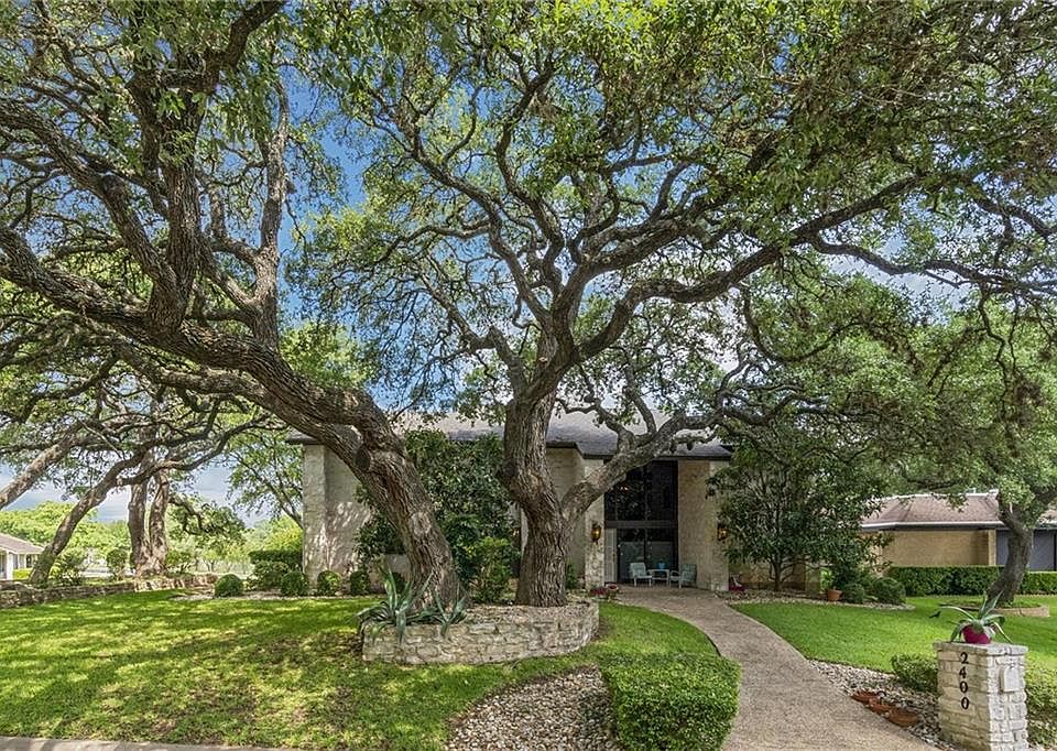 Home is in private golf club community of Onion Creek & is on a corner lot w/ large trees & backs up to a pond & park area. This custom built home has vaulted ceilings in living, family & master bedroom. Saltillo floors are in foyer, hallway, living & dining areas. Wood burning fireplaces are in living & master suite. A double story foyer welcomes you & leads into a hallway to enter living, dining, kitchen/family or master suite. Living area is very impressive for relaxing or entertainment & has an access door to back porch. Formal dining area can accommodate several pieces of furniture. Kitchen & family room are open to each other, separated by a large breakfast bar. A wet bar is in the family room. Master suite is spacious w/ two separate vanities, sunken tub, separate shower & walk-in closet. Three bedrooms & two baths are up. Powder & laundry are on main level, & a laundry closet has a large safe. Adjacent pond & park are viewed from the back yard gazebo. This is a unique home!