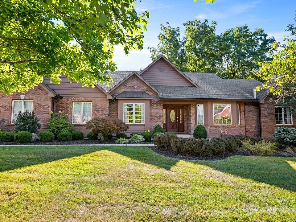 Open House Sunday 11-12:30! Well maintained Dennis Ott built ranch. Situated on a well maintained wooded/level yard. Open floor plan w/ vaulted ceilings, natural decor, hardwood floors, finished lower level, 3 car oversized garage. Fully equipped, double sided fireplace, 4 season room, walk-in closet, lawn sprinklers and much more!