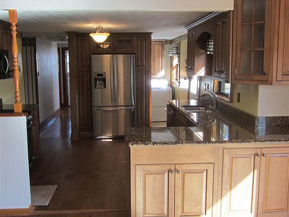A very nice home in the country is available. A nice 3 bedroom, 3 bath home, with a half basement that is fully finished. The upstairs has a recently remodeled kitchen with new cabinets, granite counter tops, stainless appliances, with nice hardwood flooring throughout the home. There is carpet in the living room and bedroom, with hardwood under the carpet. Living room has fireplace with propane gas logs. The furnace and water heater were replaced in 2015. Has a fully finished basement with a full bathroom and wood burning fireplace in the living room area. Outside has a blacktop driveway with a detached 24'x24' two car garage with electric door openers. Home also has an attached carport on the house.