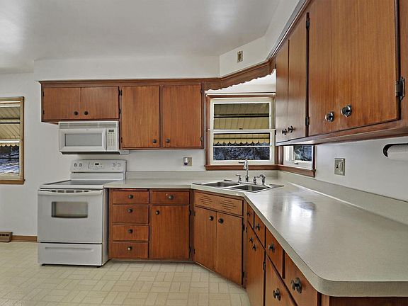 Meticulously maintained 3-bedroom, 1-bath ranch on a spacious corner lot. Ideal for first-time buyers seeking a move-in-ready home with long-term potential or those looking to downsize.A newer driveway and 1.5-car garage add convenience, while the corner lot offers extra space. All appliances--including refrigerator, oven, microwave, washer, and dryer--are included. Close to shopping, dining, and daily amenities.Hardwood floors lie beneath the carpet on the main level, offering comfort now and the option to reveal the original wood later. The basement is clean, spacious, and wide open for possibilities, with an existing bar area and a newly installed toilet for added functionality and future finishing.Ready for its next owner--schedule your showing today!
