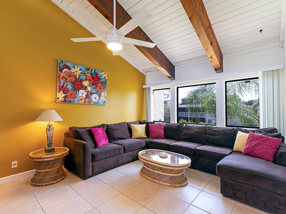 Bright and spacious 3 bedroom 2 bath condo with new roof and AC located in the one of a kind ocean front community that is Ocean Village. One of the most affordable communities situated on 3000 ft of unspoiled private beaches. High vaulted ceiling in main living area, fully furnished, remodeled baths, galley kitchen & large laundry/pantry area. Comes turnkey and ready to move right in or can be used as an investment rental property. Amenities galore: brand new main swimming pool, executive golf course, pickleball, tennis, bocce, shuffle board, new club house with state of the art fitness center and so much more. Plus a tiki bar open for lunch & cocktails, & an onsite ocean front restaurant. Don't miss this opportunity to own a piece of paradise.