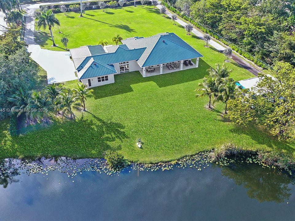 Exquisite 2021 custom-built modern compound on 2 gated acres w/private lake. Main home: 4BD/4.5BA/4,038SF Living. Grand foyer, soaring 12ft ceilings, open living/great room, chef's kitchen w/quartz waterfall island, 48"x48" porcelain tile, all bedrooms w/ensuite bath & walk-in closet, luxurious primary suite. Guest House: 1BD/1BA/660SF w/living, kitchenette+flex space. Spacious covered outdoor living. Expansive grounds for pool, sport courts, equestrian. Oversized garage w/epoxy floors, custom cabinetry+workshop & space for lift. 2 driveways for boat/RV. Smart, secure & efficient: impact windows/doors, foam-insulated concrete, metal roof w/solar vents, 7-camera security, solar motorized gate. HOA $200/yr, no restrictions. Some photos virtually staged. Design Services Included for 4 rooms!