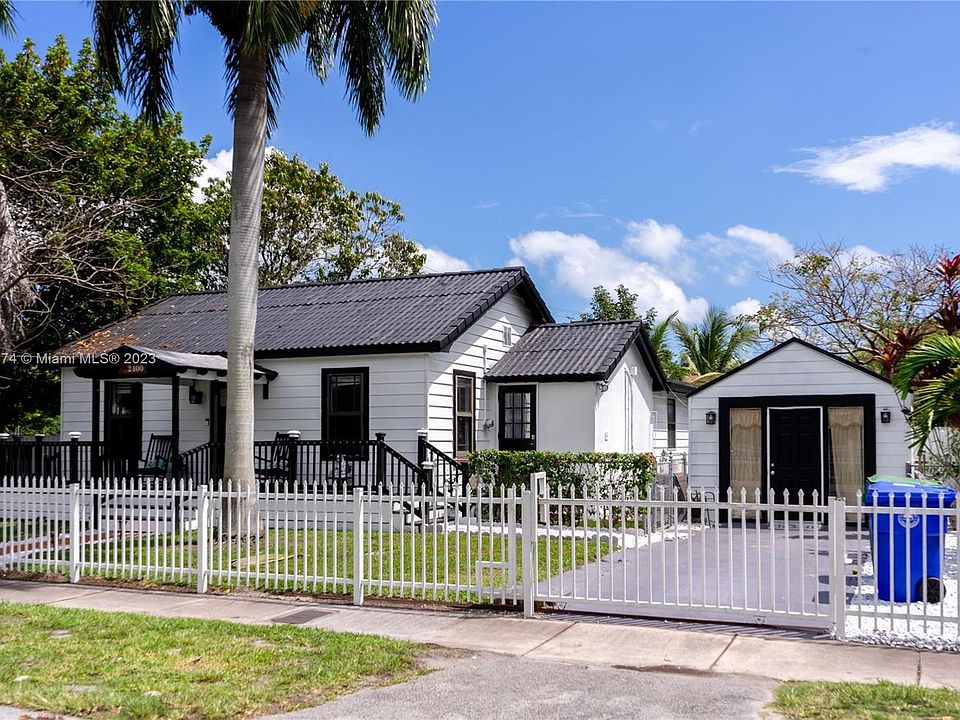 Charming, magazine quality home w/guest cottage in desirable Silver Bluff neighborhood. Ideally located just minutes to Coconut Grove, Coral Gables, Brickell, downtown Miami, Key Biscayne & the Beaches. 2 BR/1.5BA main house is currently configured as a 1BR/1BA (easily reconverted) with spacious living room, formal dining room + home office. Renovations include (but not limited to) updated - kitchen, appliances, bathrooms, plumbing & electric systems, tankless water heater, central AC & impact glass throughout. Guest house features full kitchen + living area & 1BR/1BA. Enjoy outdoor living & entertaining in the expansive backyard with wraparound porch & room to add a pool. Sold fully furnished & turnkey.