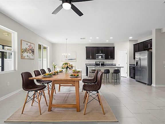 One or more photo(s) has been virtually staged. Welcome to this modern and move-in ready 4-bedroom, 3-bathroom home located in the highly desirable Highland Meadows community! With over 2,500 square feet of thoughtfully designed living space, this home features a flexible floor plan with an upstairs loft and a downstairs office or bonus room, providing options for work, play, or relaxation. Step inside and you’ll find upgraded ceramic tile flooring throughout the main living areas and plush carpeting in the bedrooms. The heart of the home is the gourmet kitchen, complete with 42" espresso cabinets, granite countertops, stainless steel appliances, and a center island with bar seating—all opening to a spacious dining and living area perfect for hosting family and friends. One of the standout features is the downstairs bedroom with a full bath, offering the perfect private retreat for guests, in-laws, or multigenerational living. Upstairs, the primary suite is a peaceful escape with a walk-in closet and a luxury en-suite bath featuring dual vanities and modern finishes. The additional bedrooms are generously sized and share easy access to the third full bath. The loft area upstairs is ideal for a home theater, game room, or additional living space. Enjoy the outdoors on your extended screened and covered lanai, overlooking a vinyl-fenced backyard—perfect for BBQs, pets, or quiet evenings under the stars. Built in 2017, this home also features fresh paint and has been meticulously maintained. Residents of Highland Meadows enjoy resort-style amenities including a community pool, cabana, sports fields, and nature trails. Located just minutes from shopping, dining, major highways, and a short drive to Disney and other Orlando attractions, this home is the total package.