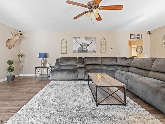 Immaculate split-level home with 5 bedrooms, 2 full baths and 2 car attached garage in Field Schools on an acre of land. A front porch greets you as you enter your updated home throughout. The living room offers light flooring with a large window letting in the natural light with ceiling fan for a breeze. The eat in kitchen is open to the dining space to make conversations flow. Oak cabinetry and ample counter space for the master chef in anyone to come out. Down the hall is 1 of the 5 bedrooms painted in neutral colors, windows surrounded with wood flooring. An updated full bath with tile flooring, large vanity, bathtub and separate shower area. Upstairs is newer carpeting throughout with 4 generous sized bedrooms, ceiling fans in each bedroom with plenty of closet space. The lower has an updated bathroom with recessed lighting, walk-in shower with seating and vanity with mirror. The laundry room/mudroom has recessed lighting and has the backdoor leading to the patio space outdoors. The basement gives you more room for storage or could be used a recreation area. Outdoors is your fenced in backyard oasis featuring a built-in Barbecue on the spacious patio. Just picture the gatherings you could have out here. Another private gated driveway leads you to the 24x40 pole barn that can hold 4 cars easily, heated, comes with a lift and a carport that’s attached to the barn. This is a mechanic’s dream just waiting to become a reality. A fire pit just waiting for s’mores to be roasted. With easy maintenance landscaping throughout. All you need to do is move in and make this your new dream home with an acre of land! Call today to schedule your personal tour.