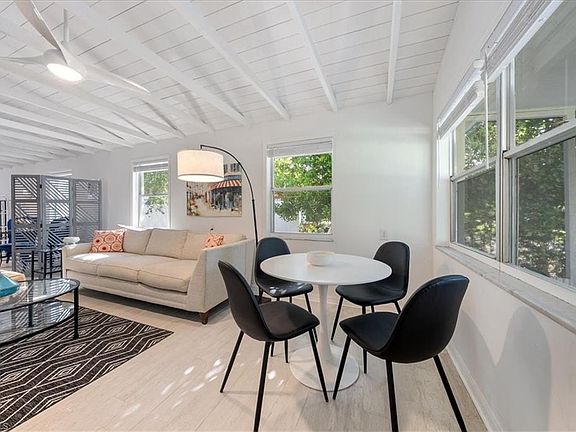 Adorable cottage available in Naples - NO HOA! This two-bed, one-bath home has been upgraded throughout in 2022, with ceramic tile, high vaulted ceilings, a beautiful backyard space with Southern exposure, and tons of light throughout! Perfect starter home or for use as an Airbnb, VRBO, or short-term rental! Offers a spacious and inviting floorplan with a wide open living area and TWO screened-in lanais! Enjoy the beautiful SWFL weather in front of the house, to the side, or in the backyard where your own private oasis with a beautiful pergola and comfortable seating awaits! The backyard also includes a single-car garage perfect for parking or for additional storage space, with a large driveway into the back with ample space for parking. Quiet neighborhood with no thru traffic! Enjoy the growing Bayshore area, close to downtown, the Botanical Garden, parks, beaches, and more!