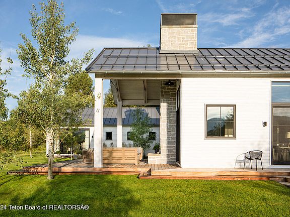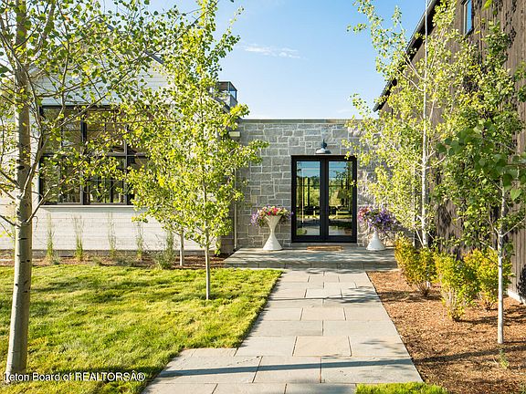 2400 Shootin' Iron Ranch Road is more than just a stunning home; it offers an idyllic setting in one of Jackson's oldest and most cherished neighborhoods. Known for its privacy and convenience, this area is favored by many locals. Designed by Northworks Architects in collaboration with Studio McGee, this one of a kind residence is situated on 4 acres. The home features expansive windows that seamlessly bring the outdoors in. The high-end kitchen is equipped with top-of-the-line Wolf and Sub Zero appliances, wine fridge, beverage center, dual pantries, a built-in Miele coffee maker and extends to the outdoors with an oversized grill and Big Green Egg workstation off the east deck. The open-concept floor plan showcases a lofty living room with a double-sided gas fireplace that can be enjoyed inside or out on the south-facing deck which overlooks the expansive backyard. The main level includes a formal dining room with Teton views, a den with a wet bar, powder bath, double laundry, a mudroom with tons of storage, and an impressive primary suite. The primary suite is thoughtfully arranged with a walk-in closet, a steam and rain shower, double sinks, a separate vanity area, and French doors opening to a private deck. The entire home was built with high-end in-wall speakers both inside and outside for seamlessly playing your favorite music. A rare find in Jackson, this home has multiple living areas with a third living space on the second level that can serve as an office, workout space, playroom, or more. There are two guest rooms with sizeable closets, a full guest bath, and a junior suite with scenic views. For added convenience, there is a laundry chute. In addition to the 2-car attached garage there is ample parking in the driveway, the property is also appointed with a detached, oversized 2+ car garage, for storing your recreational toys and vehicles. Located just minutes south of downtown, Shootin' Iron offers easy access to grocery stores, the post office, bike paths, hiking trails, coffee shops, and more. This neighborhood consists of large private lots with Teton views. This horse-friendly area, with abundant open space, welcomes a variety of wildlife, including elk, fox, deer, and moose. The county maintains the road and mail delivery is available to the subdivision. Experience the perfect blend of luxury, privacy, and convenience at 2400 Shootin' Iron Ranch Road.