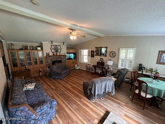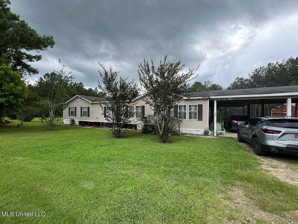 3 miles to George County and 12 minutes to Vancleave School District. This Single family double wide sits on a total of 10.78 acres (2 parcels) of land. This quiet, serene home is perfect for those looking to get away from the hustle of everyday life. Living room has vaulted ceilings, a cozy fireplace, and open floor plan. Double carport off to the side of the home and large back porch facing a pond.. Gorgeous rows of fruit trees (pears, plums, blueberries and more). There is also an approximately 2500 square foot red barn with power and 2 large sliding doors, perfect for your outdoor workshop or storage area for equipment.