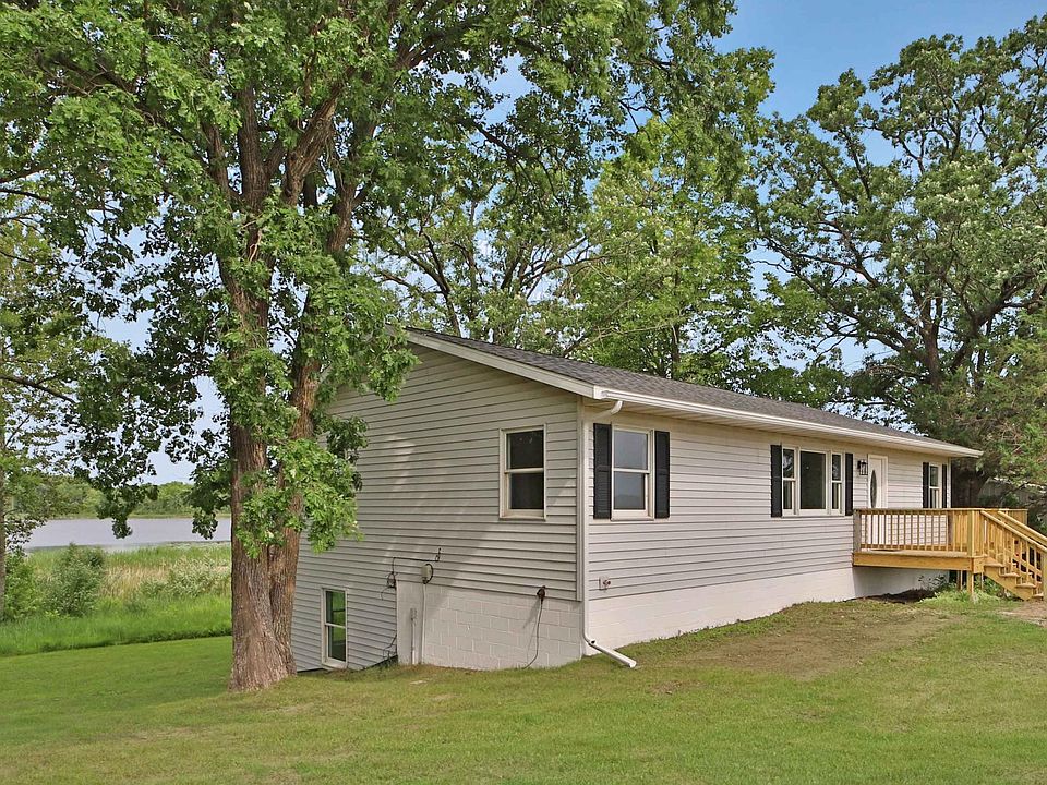Don't miss this remodeled four bedroom, three bath home with over 350' of lake shore on Rushmeyer Lake. Home features lake front living on 5+ acres, freshly painted interior, new appliances, new light fixtures, new doors, new trim, new deck, new roof on the house, vaulted ceilings, an open floor plan, new kitchen cabinets, new kitchen counter tops, new flooring, main floor laundry, remodeled bathrooms, tiled shower, a full finished walkout basement, new siding on the lakeside of the house, a detached garage, new mound system and so much more.