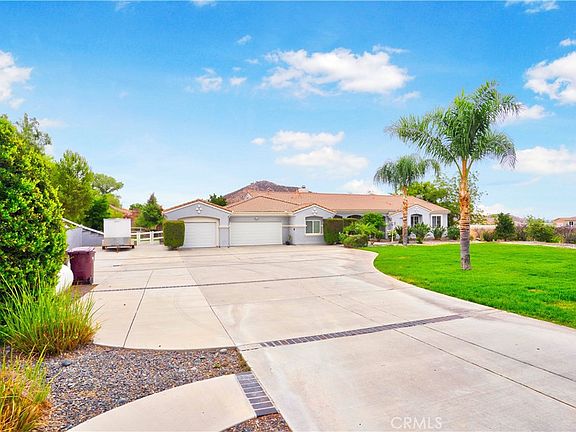 Welcome to this amazing Gavilan Hills estate that perfectly blends style and livability! It’s a great fit for all kinds of lifestyles. Inside, you’ll find cozy spaces designed for comfort and connection, thanks to an open layout that’s perfect for family hangouts and get-togethers. The kitchen is a chef’s dream, loaded with high-end appliances and granite countertops, plus a big pantry for all your cooking essentials. The living room flows right into the dining area, creating a warm vibe for entertaining. The primary suite is like your own private retreat, spacious and serene, making it a great spot to unwind. There’s a large custom primary wardrobe closet to make your daily routine a little easier. The Jack and Jill bedrooms are perfect for families or guests, giving everyone their own space while still keeping that sense of togetherness. Step outside to the spacious backyard, a real highlight of the property! The Swim Pro hot tub is just waiting for you to kick back after a long day, and the half-court basketball setup is all about fun and staying active. Plus, with over 20 fruit and nut trees scattered throughout the yard, you'll get to enjoy fresh produce right from your own home. The full irrigation system, powered by well water, makes it super easy to keep everything lush and green without the hassle. And let’s not forget about the solar system with 72 panels, which not only boosts energy efficiency but also helps save on those utility bills—talk about a win-win! For safety, the estate has modern security features like an automated coded gate and two in home safes, giving you peace of mind. If you work from home or just need a quiet spot to focus, there’s a dedicated home office space that’s perfect for getting things done. Plus, the outdoor tool shed is great for storing all your gardening gear or sports equipment. And let’s talk views! The estate boasts breathtaking mountain scenery, with stunning sunrises and sunsets that you can enjoy right from your backyard. The lack of light pollution means the night sky is perfect for stargazing—imagine unwinding under the stars after a long day. This home isn’t just a place to live; it’s a sanctuary where luxury meets comfort and nature, offering a one-of-a-kind living experience. Whether you're looking to relax, entertain, or enjoy the great outdoors, this estate has it all!