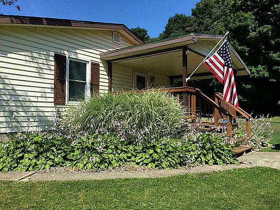 MUST SEE! 3 bed, 2 bath home w/ pellet stove on 2 acres with beautiful country view. Awesome 1008 Sq Ft 3 bay garage w/ half-bath, refrig, kitch counter and sink, hot water, and wood stove! Home constructed on cement slab with block foundation. Newer flooring and doors.