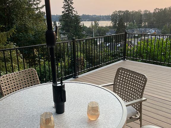 This home lives down a secluded road with about seven other houses, followed by a private driveway, taking you to one of the best views in town! This 3 bedroom 2 bath home offers exceptional views of Lake Stevens from the brand new wrap around deck & covered patio space above! Open main floor remodeled living space and fully finished basement. Primary bedroom upstairs with slider to private covered patio space. Lots of natural light throughout. Recently installed three zone ductless heat and air conditioning system will keep you comfortable year round. Large private lot (brand new fence) with low maintenance landscaping, storage shed included. Close to downtown Lake Stevens and walking distance to Lundeen park with public beach, playground, kayak rentals and more!