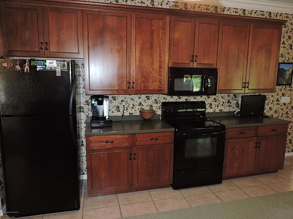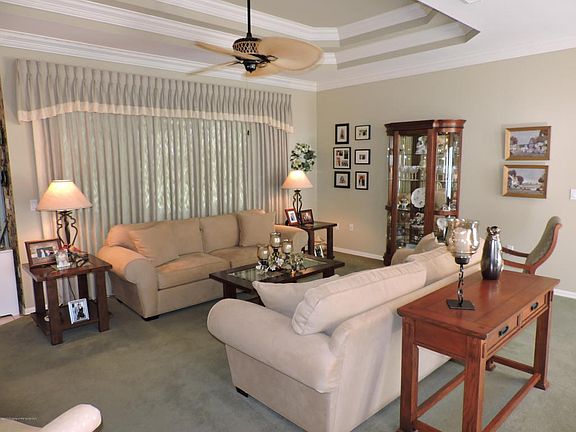 Move In ready Custom Built Golf Course Home- 3 Bedrooms 2.5 Tiled Bathrooms- 3 Car Garage- Dual Door Entry- Tile Foyer- The Great Room Has A Triple trey Ceiling And Crown Molding Formal Dining Room Has Crown Molding- Tiled Eat In Kitchen With New Verticals- Cherry Wood cabinets- Dual Sinks- Corian Counter Tops And Breakfast Nook With Trey Ceiling- Master Bedroom Suite With A Walk In Plus A Double Closet- Plant Shelves- Garden Tub And Separate Shower- Dual Sinks- Corian Counters- Extras Include Inside Laundry- Transom Windows- Pool Bath- Ceiling fans- Paneled doors- Covered Screened Porch- Outside Is Wired For A Pool Or Hot Tub- 3rd. Bedroom Walk In closet- 3rd. Garage Has A Wall AC Unit And Used As An Exercise Room- Custom Window treatments- Irrigation System- Call Today For A Showing