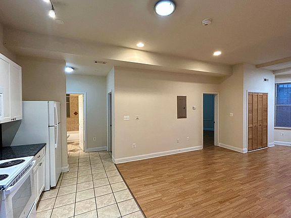 The apartment also includes two generously sized bedrooms with large closets, providing plenty of storage space for your belongings. The updated bathroom features a tiled bath, vanity mirror, and soaking tub, offering a relaxing retreat after a long day.