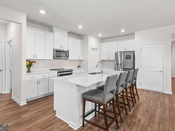 Welcome to this like-new 5-bedroom, 3-bath home in the highly sought-after gated Sweetwater Green community. Built in 2023, this spacious residence highlights modern finishes, energy-efficient design, and thoughtful upgrades throughout. The open-concept main level boasts 9-ft ceilings, a bright living area, and a chef's kitchen featuring quartz countertops, sleek white cabinetry, custom pantry shelving, stainless steel appliances with an induction range, and an oversized island ideal for gatherings. A bedroom and full bath on the main floor provide excellent flexibility for guests or multi-generational living. Upstairs, the primary suite is a private retreat with a spa-inspired bath offering dual vanities, a large glass-enclosed shower, and a walk-in closet. The second level also includes a versatile loft, three additional bedrooms, and a convenient laundry room. All closets have been customized and are fully configurable. The home is equipped with instant hot water throughout. Community amenities include a resort-style pool, clubhouse, playground, dog park, community garden, sidewalks, and scenic walking trails, with yard maintenance covered by the HOA. Just minutes from Duluth and Downtown Lawrenceville, I-85, and GA-316, this home blends comfort, style, and convenience in a prime location.