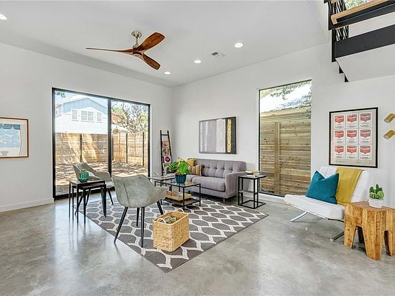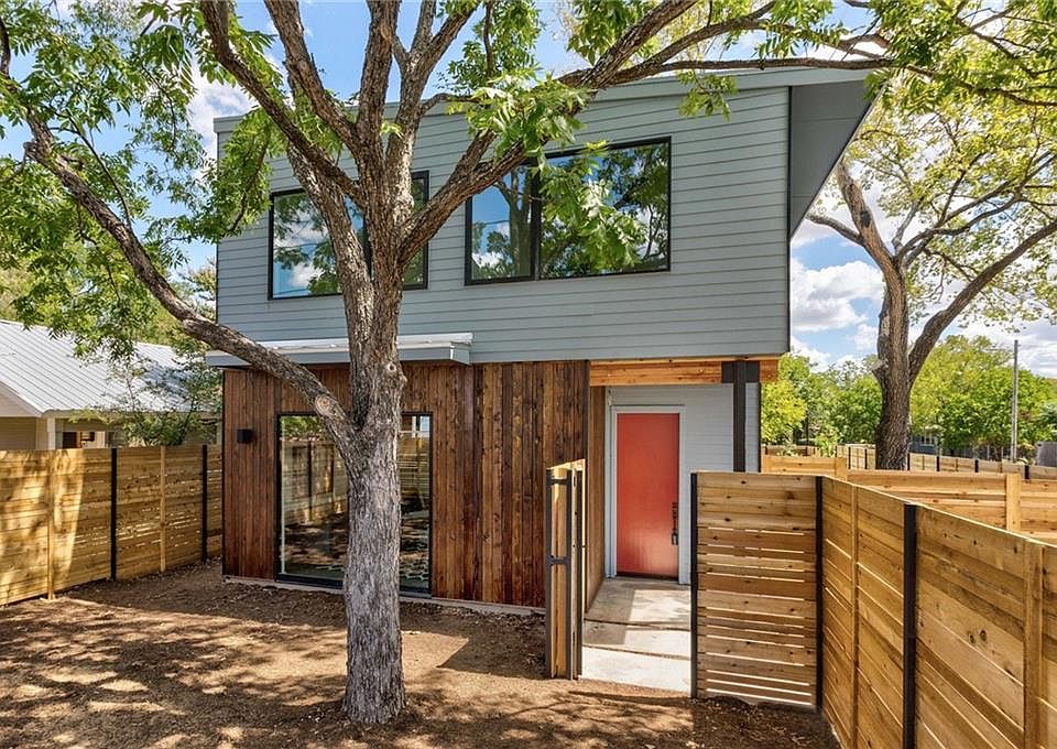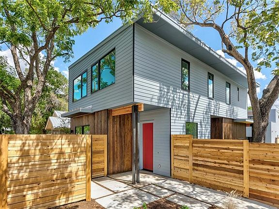 This custom design achieves a natural flow between the indoor/outdoor spaces while maintaining privacy and minimizing solar heat gain. The living, dining and kitchen spaces all have their own private courtyards. No hallways in the entire house. Custom cantilevered stairs deliver you to the 2nd floor common area. Rare detached two car garage with 2nd story studio with full bath and 2nd story patio - perfect for home office/studio/rental space. Custom walnut cabs throughout; white oak UV oiled flooring, Custom hood vent, Marble tile, Huge kitchen island, Western Sliders, Irrigation system, Stained cedar siding, Metal hardscaping and many other custom touches. A short walk to restaurants, clubs and coffee houses, a quick bike ride to everything east Austin has to offer. A must see.