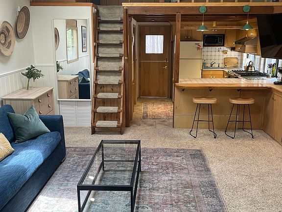 Cozy garden entrance studio cottage. Vaulted ceilings and lofted bedroom. Very quiet and comfortable. Fully furnished and fully stocked kitchen. Kitchen is well appointed with full size fridge, dishwasher, and new gas range with strong exhaust hood. Includes queen size bed, and pull out couch with full size mattress. All bedding and linens are provided. All utilities are included (wifi, water, sewer, garbage, gas, and electricity).