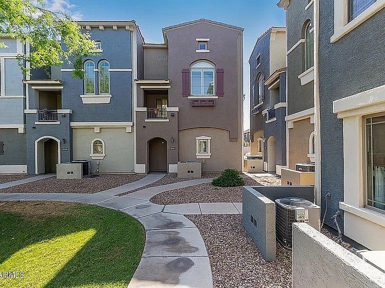 Absolutely the BEST VALUE in all of Villagio! Stunning, fully upgraded end unit home located in Villagio at Tempe with a premium location facing one of the rare green spaces. Close proximity to the 101 and 202 freeways near ASU, Cubs spring training stadium, Tempe Marketplace and all that Scottsdale has to offer. Boasting two spacious bedrooms, both with en-suite bathrooms with a guest powder room on the main floor. Bathroooms have been remodeled with framed in Rain shower doors. Complete kitchen remodel with top grade, beautiful granite, New GE Profile Black stainless appliances and gorgeous white cabinets with updated hardware, sink and faucet. Enjoy morning coffee or an evening cocktail on the private balcony with outdoor turf and mood lighting. Gorgeous, top-of-the-line custom Plantation Shutters throughout. Smart home Vivint system with outdoor camera, smart thermostat, smart front door lock. New Bosch high end Variable Speed HVAC installed in 2023! 2 car garage with Custom Cabinets, new garage door hardware and opener. New entry flooring and new paint throughout! New Water Softener too! If you can find a better VALUE in Villagio at Tempe, buy it. This unit boasts over $40,000 of recent upgrades--all receipted! A truly must see! Make us an offer!