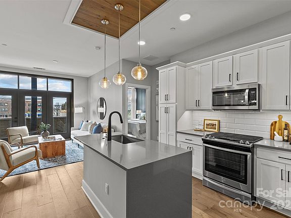 FINANCING INCENTIVES AVAILABLE. Beautiful newer construction condo in the heart of Dilworth and South end. This 2 bedroom, 2.5 bath condo offers the best of turn-key, easy living. The kitchen is stunning with crisp white cabinets, beautiful quartz counters and loads of storage & Counter space. The newly built in bar is a perfect place for entertaining or great drop zone upon entry. The half bath and laundry room are perfectly tucked away from the open living space. 10ft ceilings throughout give this place an airy ambiance. This split bedroom plan is perfect for a home office, guest suite or 2nd living room. Large walk in closets in both guest and primary rooms offer maximum storage. The primary's beautiful accent wall is the perfect compliment to the stunning bathroom tile. His and her vanities along with a custom closet design elevates this from any ordinary condo. Amenities: gym, fire pit, outdoor grill, deeded parking and gated access.