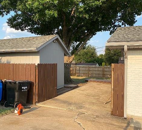 This property has three bedrooms and two bathrooms, an office, a renovated garage that houses the fourth bedroom or game room, a spacious backyard and deck, as well as a storage shed with a loft and air conditioning.