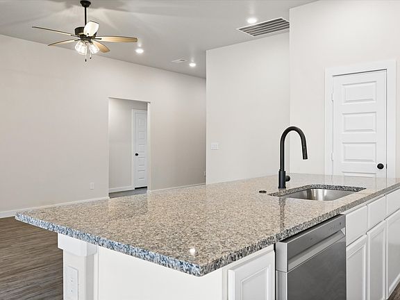 Our Adalynn floor plan boasts an affordable and spacious option for new home buyers in West Texas.The Adalynn floor plan features:Brick exterior accented by a grand tower entrywayLuxury vinyl plank flooring in the home's common areasOpen-concept kitchen, living, and dining areaGranite or quartz countertops throughoutSpacious kitchen island with bar seatingStainless steel appliancesEnclosed pantryThree additional storage closetsPremium plumbing and lighting fixturesSecluded master suite with walk-in closetCovered back patio