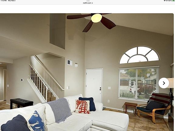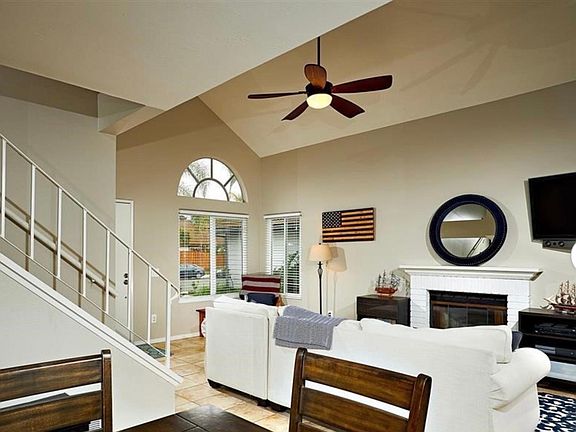 Spacious living room with high vaulted ceiling and lots of windows to let sunshine and nice breeze to open floor plan. Entertaining and private backyard with no one behind and large deck off master bedroom to enjoy views of canyon and surrounding hills. The entire home is tiled, stairs included, freshly painted outside and inside with lots of closets and storage. All bedrooms are upstairs. 1/2 bath downstairs and 2 full baths upstairs. The upstairs floor has wood plank style. Bathrooms are upgraded. Appliances are included: refrigerator, washer and dryer. The front and back yards are low maintenance with pebbles and rocks. Convenient location close to shopping, dining, College Blvd, Sprinter Station. Renter shall pay all utilities costs. 2 car parking in garage, 2 on drive way , and off street parking. Non smoking home. Quiet location. 2 cats maximum are allowed with deposit. Rent is $3400 per month. Deposit is $4000. Renter shall pay for all utility costs including internet, electric, gas, water and trash. 2 cats maximum are allowed with deposit. 2 car parking garage plus 2 additional parking on driveway and plenty off street parking. Non smoking home.