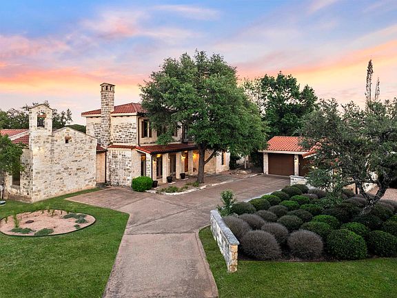 "VILLA OTIVM" (Home of Peace & Leisure) This stunning Italian Villa sits above a secluded cove on Lake Travis in the prestigious gated community of Barton Creek Lakeside. With Bell Tower and White stone red tile roof, open court yard, Mesquite & Provenza Porcelain flooring give this home old world charm just 40 miles from Austin. The plans for this estate came from a Villa in Italy making it a truly unique property. The large veranda off the back of this home overlooks Lake Travis and the stone step pathway leading down to the Cove. This house built in 2000 with two stories has 3 bedrooms, 3.5 baths, with large gourmet kitchen that can handle your entertaining needs. The upstairs has two bedrooms and a full bath, with views of the Hill Country and Lake Travis. Just off the living room is a large vaulted wood ceiling studio that could be used as a office, study, dining hall or bedroom. Numerous windows through out the home give views of the 1 acre Estate. The detached two car/one golf cart garage also features a climate controlled room that can be used for an office, or wine storage. Architect Steve Todd remodeled this Scott Penner built home in 2011. This gated community has a 18 hole golf course designed by Arnold Palmer, Club House with private dining, fitness center, Olympic size outdoor pool and hot tub, and tennis courts. Privately owned Marina with leased slips. High Speed Fiber Optic Service available to every home. Too many high-end amenities to list but truly worth seeing! Ciao...!!!